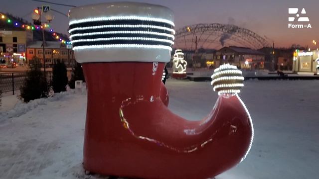 Новогодняя антивандальная фигура из стеклопластика "Сапоги" со светодиодной подсветкой.