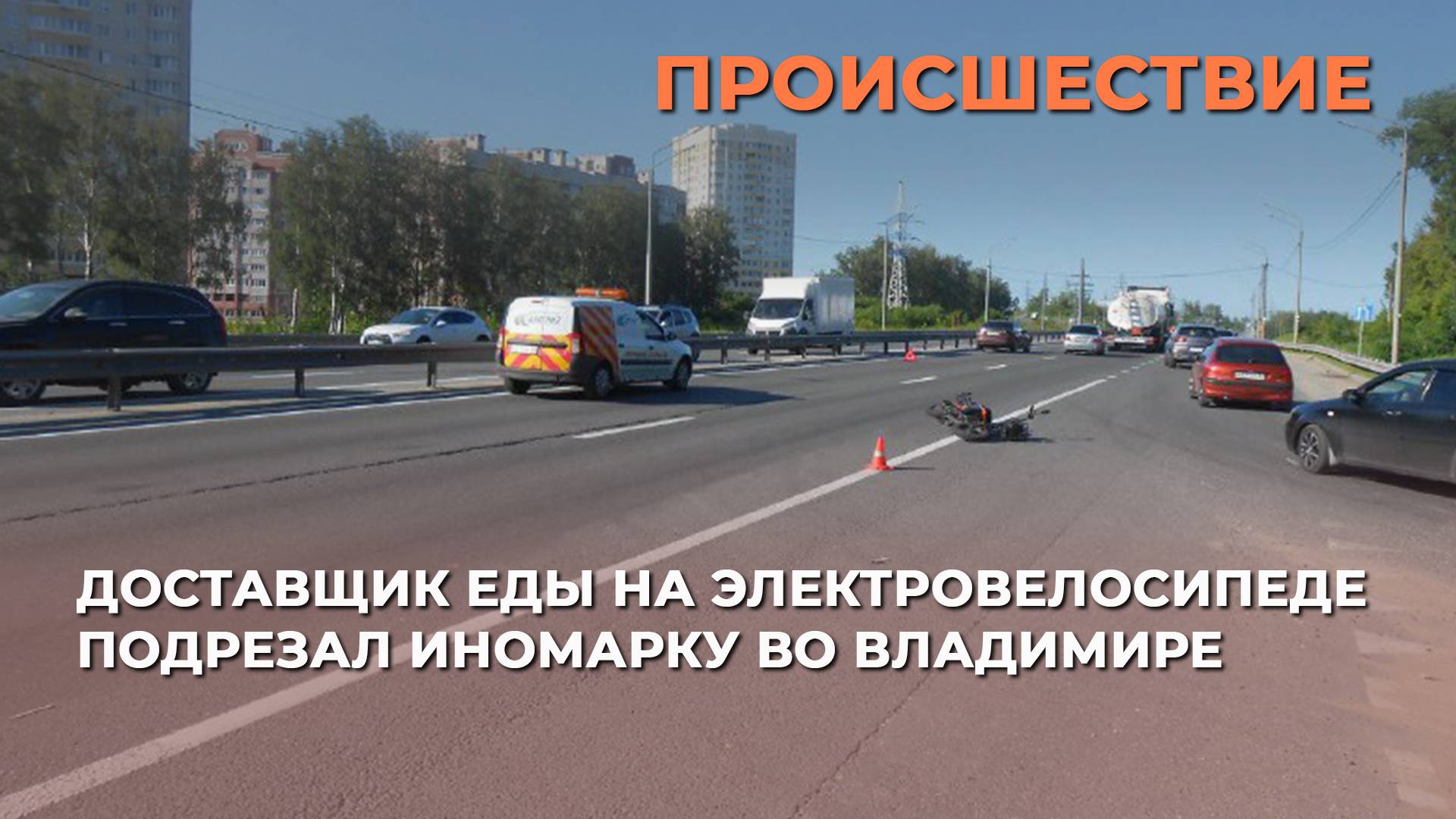 Доставщик еды на электровелосипеде подрезал иномарку во Владимире