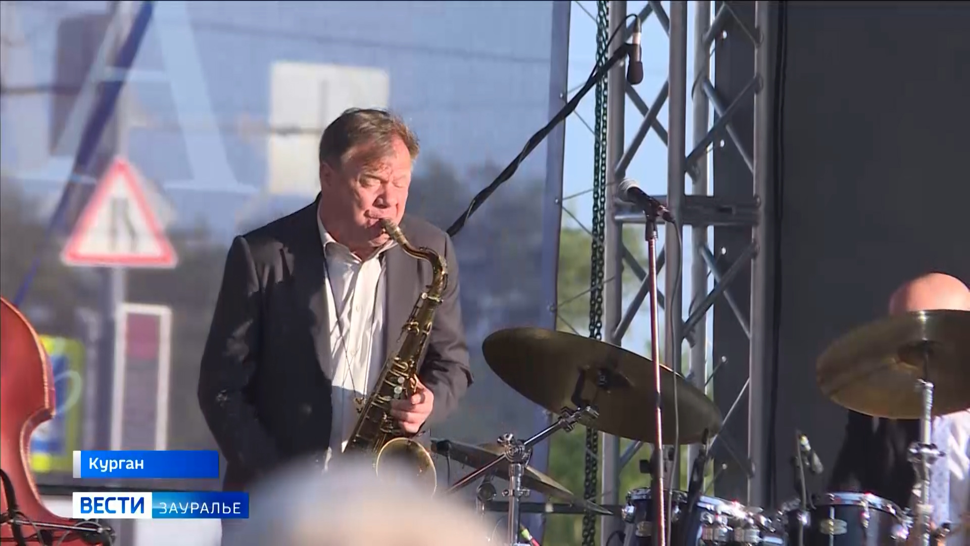 В Курганской области продолжается Международный музыкальный фестиваль "От Востока до Запада". На Троицкую площадь вышел легенда русского джаза Игорь Бутман со своим квинтетом.