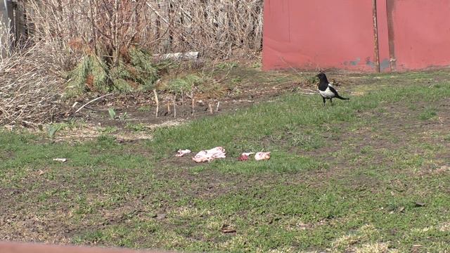 Конец апреля на участке, угощаю друга коршуна и подружек сорок.