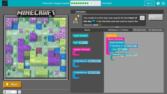Minecraft Hour of Code Voyage Aquatic - Code.org Minecraft Voyage Aquatic Level 1 to Level 12
