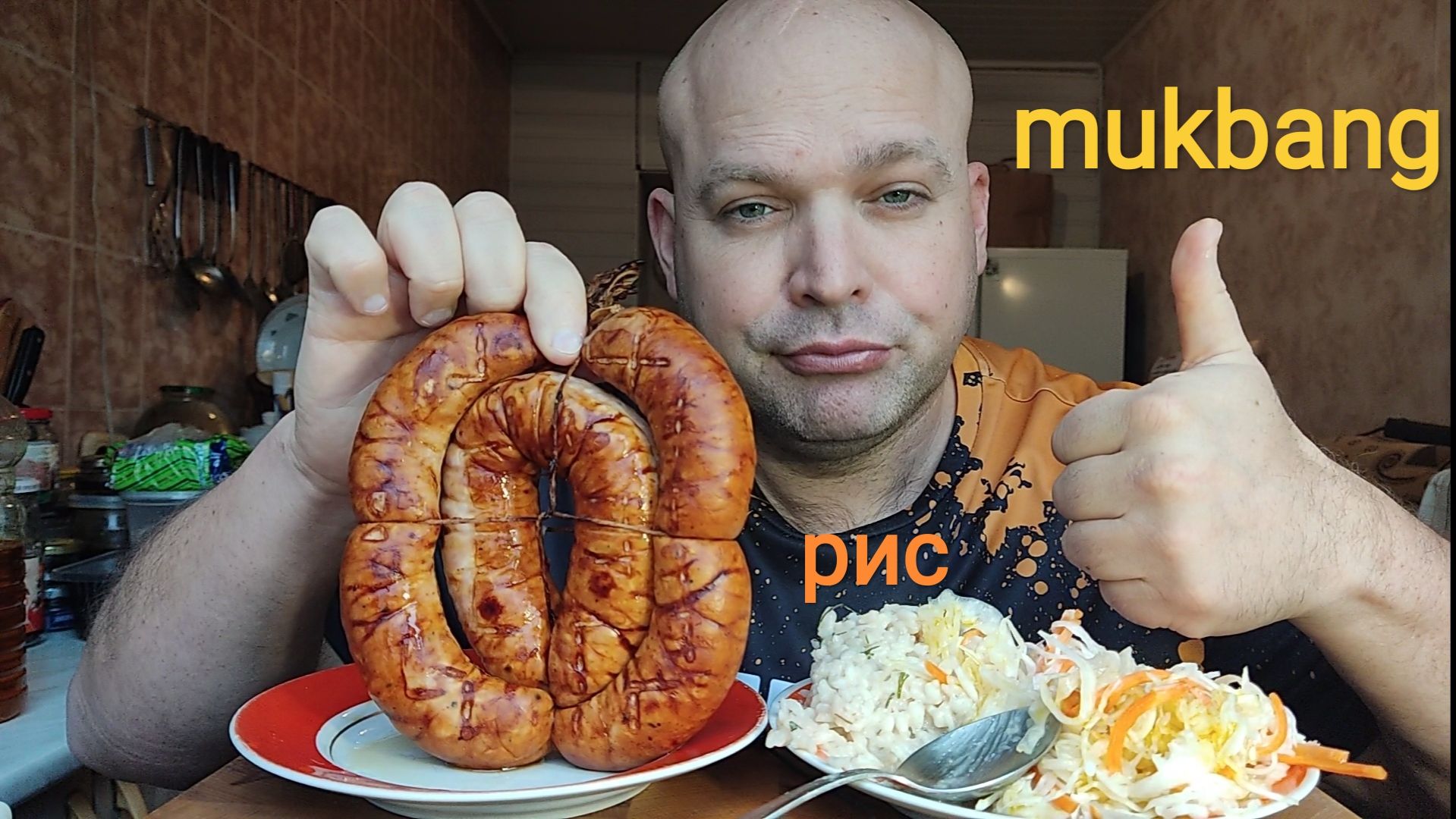 МУКБАНГ КОЛБАСА деревенская и рис отварной/ОБЖОР/ОБЕД/ЕДА