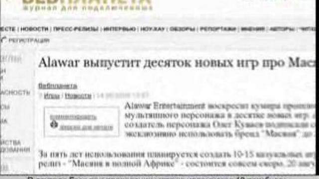 "Вести.net": "новая работа" Масяни и интернет-Пикалево 15 августа 2009 г. 04:39 Масяня устроилась на новую работу. Согласно договору, подписанному между автором первой героини Рунета Олегом Куваевым и Alawar Entertainment, компании передаются права на использование бренда Масяни в играх.