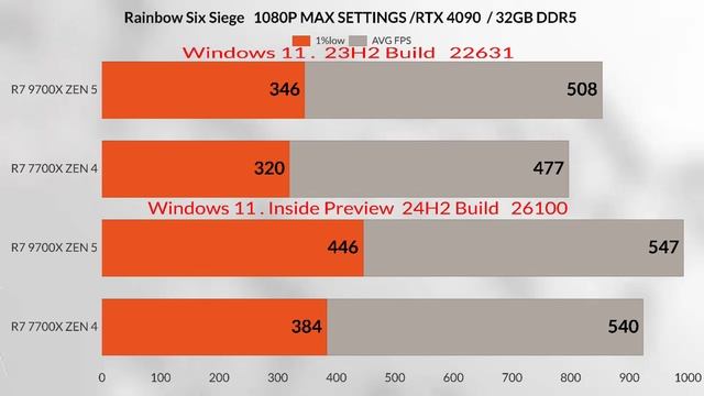 RYZEN R7 9700X vs RYZEN R7 7700X Gaming Test | Windows 11 Build 22630 vs Build 26100 | HOW MUCH WİNDOWS UPDATE AFFECTS GAMİNG ON AMD 9000 series and Zen4 the Impact of windows on Zen5 & Zen4 --- It was recently discovered that branch prediction optimizations in the upcoming Windows 11 version 24H2 can significantly boost performance on AMD-powered computers. The sad thing is that Windows 11 version 24H2 is still not available to the general public. While we wait for Microsoft to release 24H2 to all users sometime later this year, AMD has some interesting news for Ryzen customers. As it turned out, the latest non-security update for Windows 11 backports branch prediction optimization from Windows 11 24H2 to Windows 11 23H2. As a result, after installing KB5041587, you should see free performance uplifts on your computer with a Ryzen 7000 or Ryzen 9000 Series processor. ------------------ Are you ready to dive into the ultimate gaming showdown between the **9700X** and **7700X**? In this video, we put these powerful CPUs to the test on ** Windows 11 Build 22630** VS **Build 26100** to see how these different versions impact gaming performance on **Zen5** and **Zen4** architectures. Whether you're a gaming enthusiast or a tech geek, this detailed comparison will give you the insights you need to choose the best setup for your gaming rig! **🔍 What You'll Learn:** - **Gaming performance** differences between **Zen5 9700X** and **Zen4 7700X**. - How **Windows 11 Build 22630** and **Build 26100** affect your gaming experience. - In-depth **CPU specifications** and what they mean for gaming. - Tips to optimize your gaming setup with these CPUs. **💻 CPU Specs:** - **AMD Ryzen 9 9700X**: **12 cores**, **24 threads**, **Base Clock: 4.8 GHz**, **Boost Clock: 5.7 GHz**, **TDP: 170W**. - **AMD Ryzen 7 7700X**: **8 cores**, **16 threads**, **Base Clock: 4.5 GHz**, **Boost Clock: 5.4 GHz**, **TDP: 105W**. Whether you're upgrading your system or just curious about how these CPUs stack up against each other, this video is packed with valuable insights and actionable advice! **📢 Don't Forget:** - **Like** if you enjoyed the video! - **Subscribe** for more in-depth tech reviews and comparisons! - **Comment** your thoughts on which CPU you're rooting for! **Hashtags:** #9700Xvs7700X #Zen5 #Zen4 #Windows11Gaming #CPUTest #GamingPerformance #AMD #PCGaming #TechReview #Win11Build22630 #Win11Build26100 --- Music from #InAudio: https://inaudio.org/ Infraction- Almost Evil Music provided by Infraction No Copyright Music Spotify: https://spoti.fi/3gJIh0R Теги: ryzen 7 7700x vs 9700x,9700x vs 7700x,ryzen 7 9700x vs ryzen 7 7700x,7900x vs 7700x,9600x vs 9700x,ryzen 7 7700x v 9700x,7700x v 9700x,windows 11 26100,amd ryzen 9700x,ryzen 9700x,ryzen 7 9700x,ryzen 7 9700x review,amd 9700x,windows 11 24h2 2024,windows 11 24h2 fixes,windows 11 version 24h2,ryzen 5 9600x,9700x,windows 11 23h2,windows 11 2024,windows 11 24h2,r7 9700x,new windows 11 24h2,windows 11 new update,windows 11 24h2 update