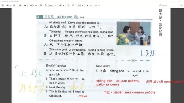 HSK2 урок 9 текст 3: "Представляешь, Давид нашёл работу!"