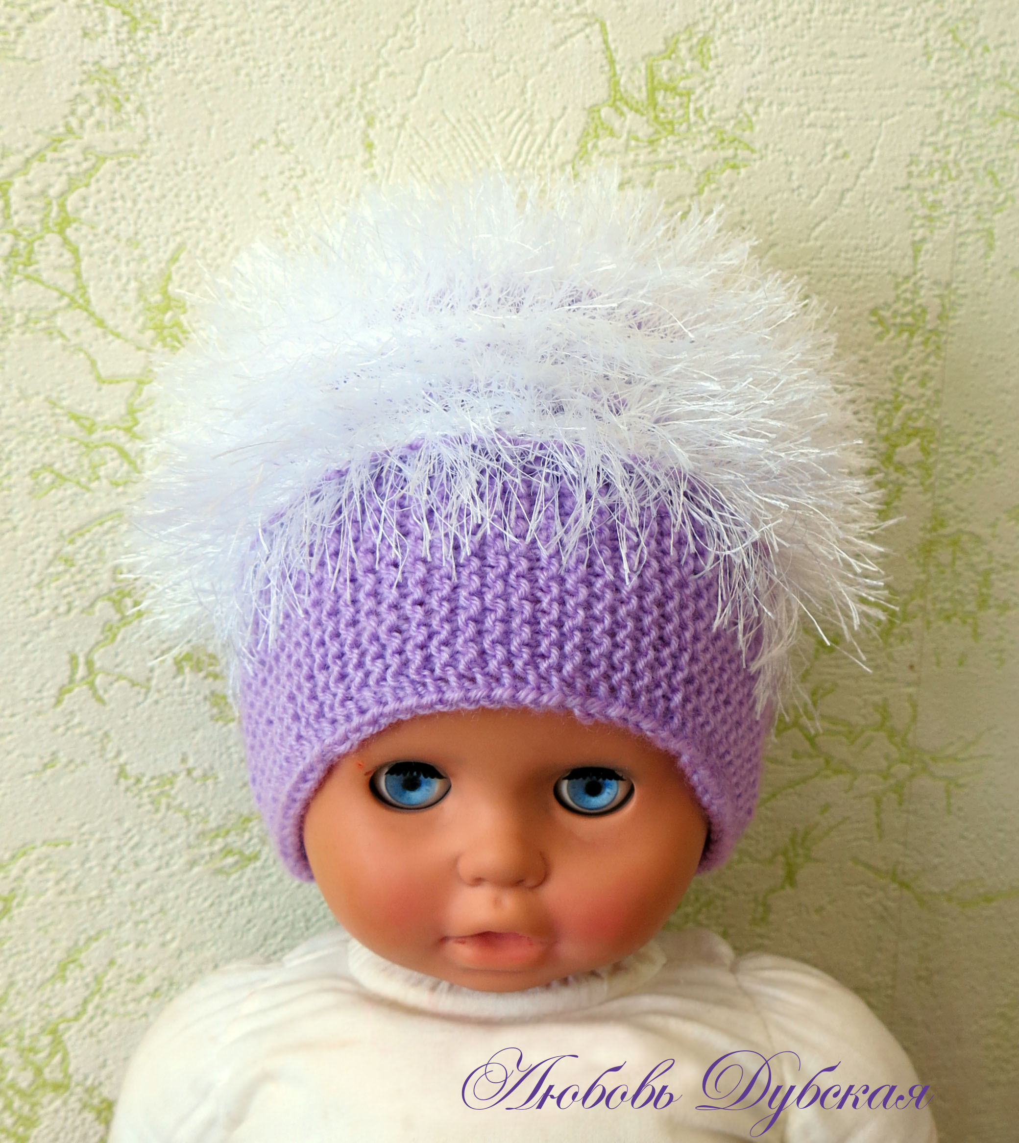 Шапочка пушистая с пряжей травка.