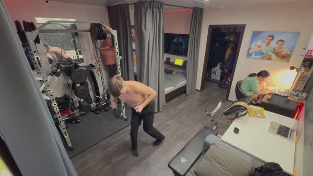 Тренировки в домашних условиях на мышцы ног и живота. 0:00:00 БОКС-НОГИ-ЖИВОТ 0:01:00 Бой с тенью / Гантели 0:10:00 Удары руками в голову 0:16:00 Присед / Икры 0:26:00 Удары руками в корпус 0:32:00 Удары ногами / Растяжка 0:41:00 Пресс на турнике / Скамья 0:51:00 Планка / Выпады