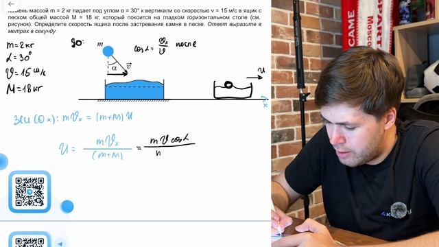 Камень массой m = 2 кг падает под углом α = 30° к вертикали со скоростью v = 15 м/с в ящик с - №
