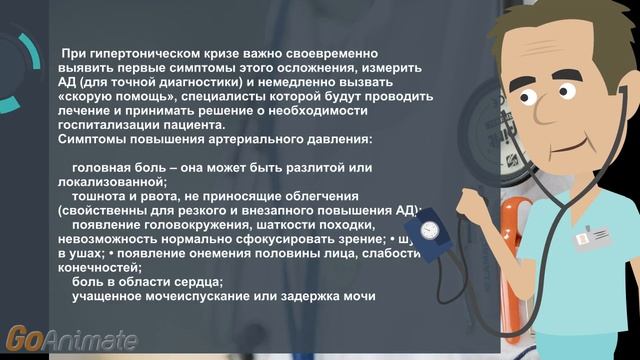 Артериальная гипертония и состояния, с ней связанные, согласно данным медицинской статистики, в современном обществе становятся самой частой причиной смертности и инвалидности. В случае, когда у человека резко повышается артериальное давление, увеличивается не только нагрузка, приходящаяся на стенки артериальных кровеносных сосудов разного калибра, но и нагрузка на сердечную мышцу, что ухудшает условия работы сердца. Именно поэтому врачи настаивают на том, что пациент, страдающий гипертонической болезнью (идиопатической гипертонией) или симптоматическими гипертензиями, возникающими на фоне заболеваний организма, или имеющий склонность к повышению артериального давления на фоне нейроциркуляторной дистонии, обязательно должны систематически получать назначенные препараты для контроля уровня АД. При резком повышении артериального давления терапия должна направляться на: снижение уровня артериального давления – оно должно быть постепенным и не превышать за час 25-30 мм рт. столба; устранение психомоторного возбуждения и проявлений этого состояния со стороны нервной системы; восстановление нормальной работы сердца, предупреждение аритмии; купирование проявлений гипертонии, затрагивающих другие органы и системы организма человека. Обязательно проведение комплексного обследования организма человека, целью которого должно становиться выявление истиной причины повышения артериального давления – это важно для назначения последующей терапии. Первая помощь человеку при высоком давлении https://youtu.be/0D_Qm3MZPAs ======================================================== Публикация видео в соц сетях с активной ссылкой на канал приветствуется Делитесь роликами на здоровье .Строго Запрещено переливать видео на другие аккаунты в ютубе!