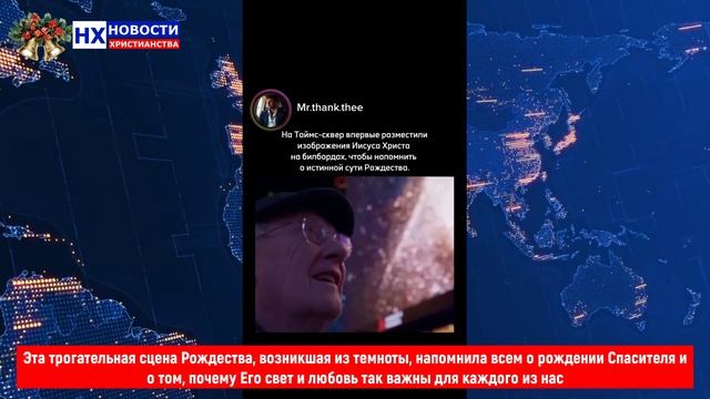 В Нью-Йорке на Times Square впервые разместили изображение Иисуса Христа на билбордах, чтобы напомнить американцам об истиной сути праздника Рождества Христова. Это удивительное событие напомнило прохожим рождественскую историю прямо в центре Нью-Йорка. 27 билбордов осветили Таймс-сквер, чтобы напомнить миру об истинной сути Рождества. На экранах показали путь Волхвов с Востока и в конце — самого младенца Иисуса. На экранах также появилась надпись: “Я — Свет миру” (Иоанна 8:12). Эта трогательная сцена Рождества, возникшая из темноты, напомнила всем о рождении Спасителя и о том, почему Его свет и любовь так важны для каждого из нас.