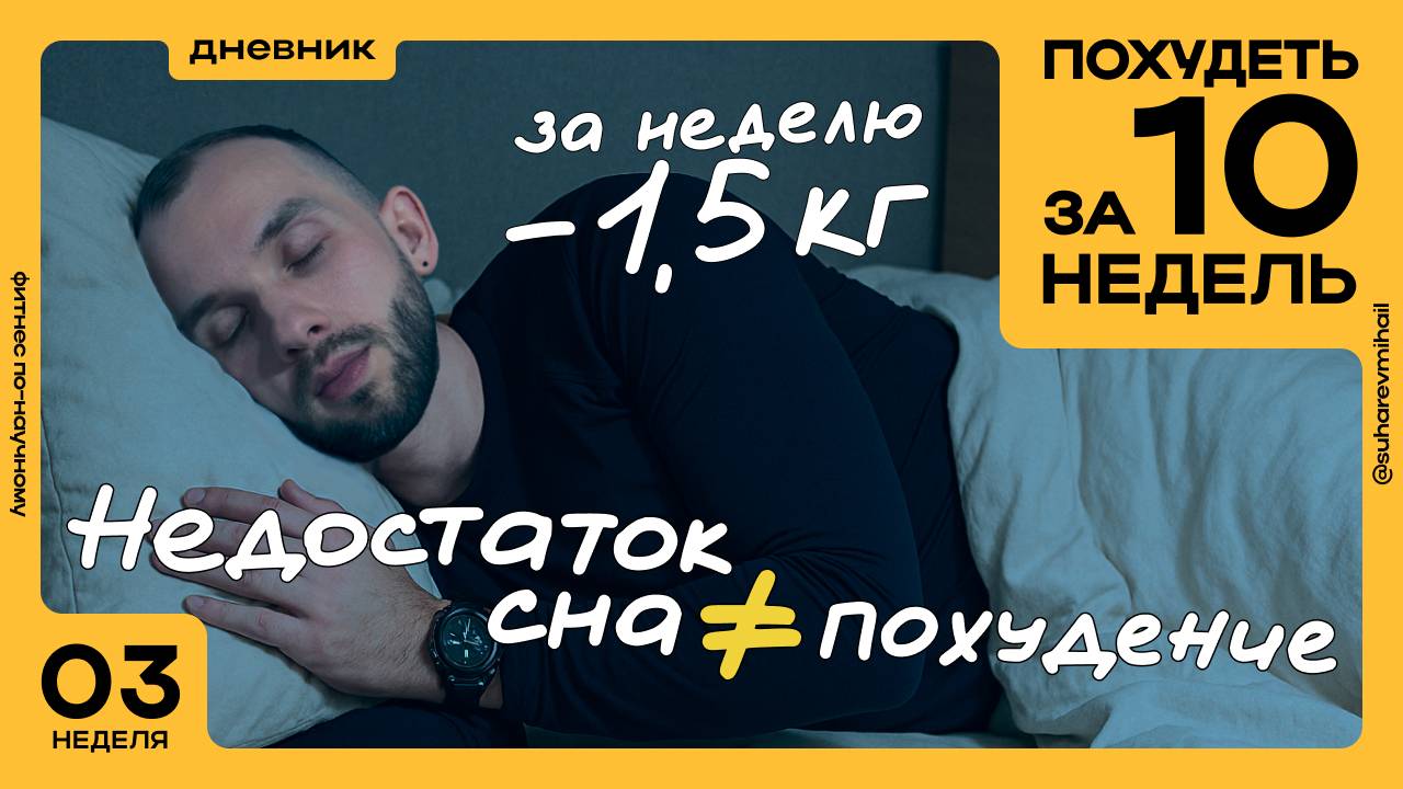 Почему полноценный сон играет ключевую роль в процессе похудения? Какие последствия недостатка сна можно ждать для вашего здоровья и веса? Ну и конечно я поделюсь как прошла моя 3 неделя дефицита калорий🔥 💥Больше о похудении: https://t.me/thesuharevmihail (В подарок рассчитаю суточную норму калорий и количество БЖУ) 00:00 - Минус 1,5 кг за 3 неделю 00:30 - Сколько надо спать чтобы высыпаться? 01:45 - Голод из-за недостатка сна 03:07 - Из-за чего мы переедаем?