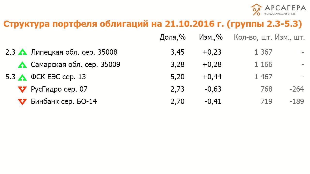 Наши фонды. ОПИФО "Арсагера - КР 1.55". Обзор с 07.10.16 по 21.10.16