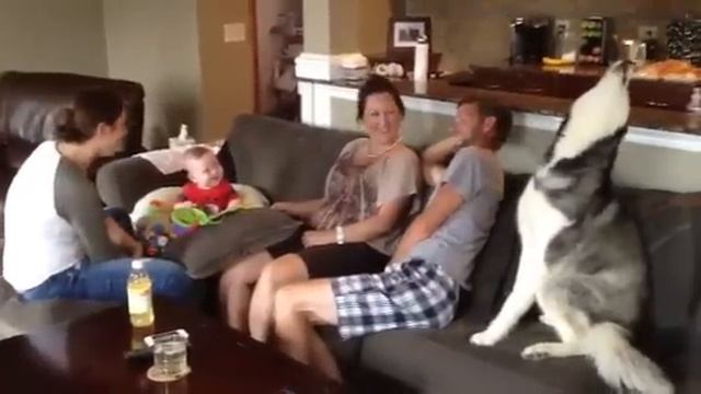 Ребёнок смеётся от воя хаски (2014 год)