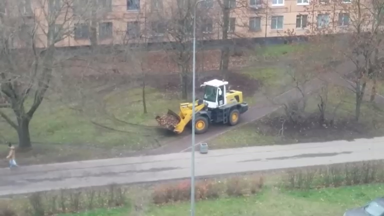 Вот так в Санкт-Петербурге "убирают" листья и уничтожают газон. #листья #уборка #коммунальщики
