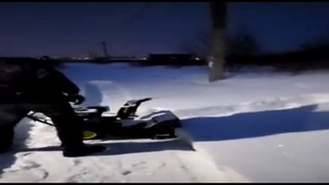 Снегоуборщик, первые испытания после сильного снегопада. Тогда минимальная толщина слоя снега была по колено, а местами в рост человека.