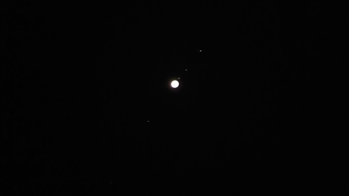 Каллисто, Юпитер, Ио, Европа, Ганимед. Внизу звездочка мимикрирует под спутник.