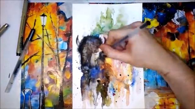 Bison (Watercolour) by Tarso