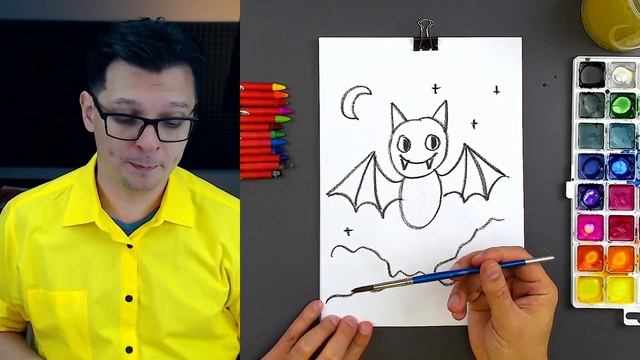 Летучая мышь рисуем красками с РыбаКит на Хэллоуин