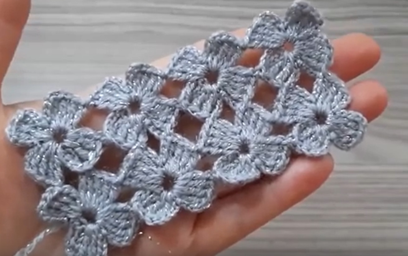Очень красивый цветочный узор крючком из серебристой пряжи