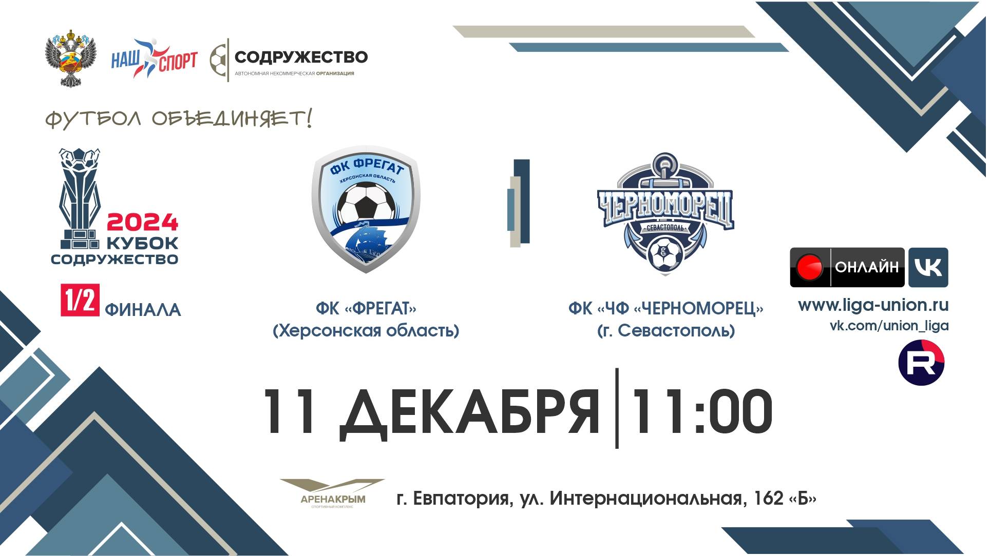 1/2 финала | Кубок "Содружество" | ФК "Фрегат" (Херсонская обл) - ФК ЧФ "Черноморец" (Севастополь)