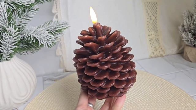 Светодиодная восковая декоративная свеча УЮТНАЯ ШИШКА, белая, 'натуральный фитилёк', AX5437160