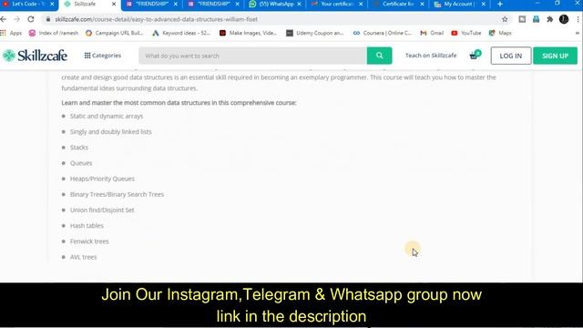 SkillzCafe Premium Courses For Free With Certificate | Development | C++ | Java | Data Structure | SkillzCafe Courses For Free With Certificate | Diwali Offer | फ्री में सीखो Online Courses से | How to get certificate in skillzcafe | Skillzcafe Certificate Trick | Get Online Course Certificate in 1 Minute | Free Courses Certificate Trick | Free Coursera Courses | Free Skillshare Premium Online Courses With Certificate #freecourses #javacourse #androiddevelopment #DSAFreeCourse #C++ #freecertificationcourses2020 #freecoursesforstudents About this video: In this video you will know about SkillzCafe Premium Courses For Free With Certificate #LetsCode#FreeCourseWithCertificate #FREECourse #SkillzCafe Channel Link plz Subscribe : https://www.youtube.com/channel/UCDfy2RuMjMq4DZjAI1y85Ng ------------------------------------------------------------- Join Our Telegram Group: https://telegram.me/LetsCodeWithRamesh Join Our WhatsApp Group: https://chat.whatsapp.com/LmGvuM1rvULH4o2PnQGY7X Join Our Instagram Community: https://www.instagram.com/lets_code___/ -------------------------------------------------------------- For Business Enquiries: bletscode@gmail.com -------------------------------------------------------------- Apply Link: https://www.skillzcafe.com/category-courses?category=premium-free-courses --------------------------------------------------------------- Topics covered in this video: skillzcafe certificate skillzcafe certificate download skillz cafe course skillzcafe free courses free course with certificate free course with certificate online free course with certificate 2020 free course with certificate coursera autocad free course with certificate google free course with certificate udemy free course with certificate microsoft free course with certificate free stock market course with certificate autocad online course with certificate free online python course with certificate free free online tally course with certificate free courses with certificates free courses with certificates online free courses with certificates 2020 skillz cafe course,skillzcafe certificate download,skillzcafe certificate,how to download skillzcafe certificate,free online courses,free online courses with certificates,free courses,free digital marketing course,free online course,skillzcafe free courses with certificate,skillzcafe free online courses,skillzcafe free coupon code,SkillzCafe,Lets Code,skillzcafe certificate free,download skillzcafe certificate,Free Online Courses,Lets Code New ---------------------------------------------------------------- My social media links: 1)LinkedIn:http://www.linkedin.com/in/lets-code 2)Facebook:https://www.facebook.com/LetsCode12 ---------------------------------------------------------------- Thanks & Regards: Ramesh & Jigyashu