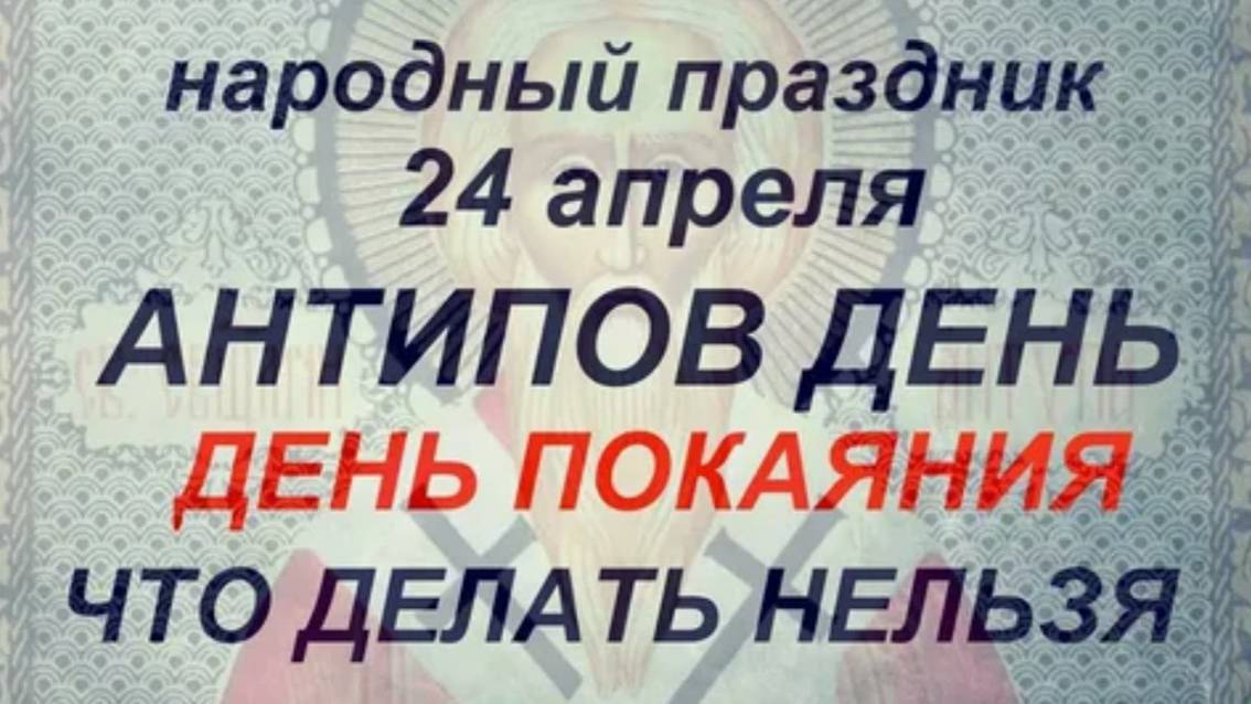 24 апреля в народе отмечают праздник Антипа Водогона, а также церковный день памяти священномученика Антипы Пергамского. Антип Водогон Антипа Пергамский, память которого отмечается в этот день, был учеником Иоанна Богослова, епископом Пергамской церкви. Согласно житию, язычники принуждали Антипа прекратить проповедь о Христе, но он отказался. За это его бросили в раскаленного медного вола в храме Артемиды. Христиане тайно погребли тело святого, а в V веке над его могилой построили храм. Мощи Антипа почитаются мироточивыми, а его гробница стала местом паломничества. В народе Антипа считали исцелителем от зубной боли. Когда у крестьянина заболевал зуб, на него клали серебряную монетку, через некоторое время вынимали её изо рта и делали в ней дырочку. После этого монетку вешали на икону святого Антипа. По поверью, боль должна была быстро утихнуть. Также Антипа называли Водогоном — поскольку в его день половодье было на самом пике. Люди говорили: «Антип очищает реки ото льда»; «Антип воду распустил», — потому что льдин к этому времени почти не оставалось. Однако бывали годы, когда реки ко дню Антипа даже не вскрывались — это обещало плохой урожай хлеба и неблагополучное лето. Если же вода разливалась широко — следовало ждать плодородного года: «Была бы водица, а хлеб народится». Наблюдали в этот день и за погодой. Дожди предвещали, что в лесу будет много грибов. А если ударят заморозки, то обильно пойдут грузди.