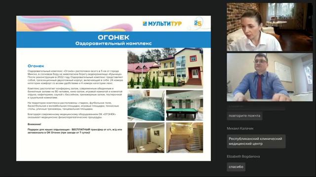 Вебинар МТ|За лечением в синеокую Беларусь|ОК Огонек|Санаторий Приморский|Санаторий Пралеска 🔔Подписывайтесь на наш канал и следите за обновлениями в соц.сетях, будем выкладывать много интересных видео о местах, куда можно поехать: ►Телеграм: https://t.me/multitour_for_agent ►ВК: https://vk.com/multitur ►Дзен: https://dzen.ru/id/5d766a6baad43600ad.. ►OK: https://ok.ru/profile/572506334933 ----------------- Задавайте свои вопросы в комментариях! ----------------- Подробнее об условиях и ценах можно узнать на нашем сайте https://www.multitour.ru/ или по телефону ☎ +7 (499) 681-61-08