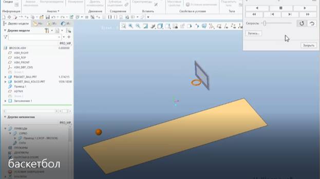 Показано создание траектории движения баскетбольного мяча при попадании в кольцо и падении на площадку Больше уроков на сайте: https://engineer-center.ru/