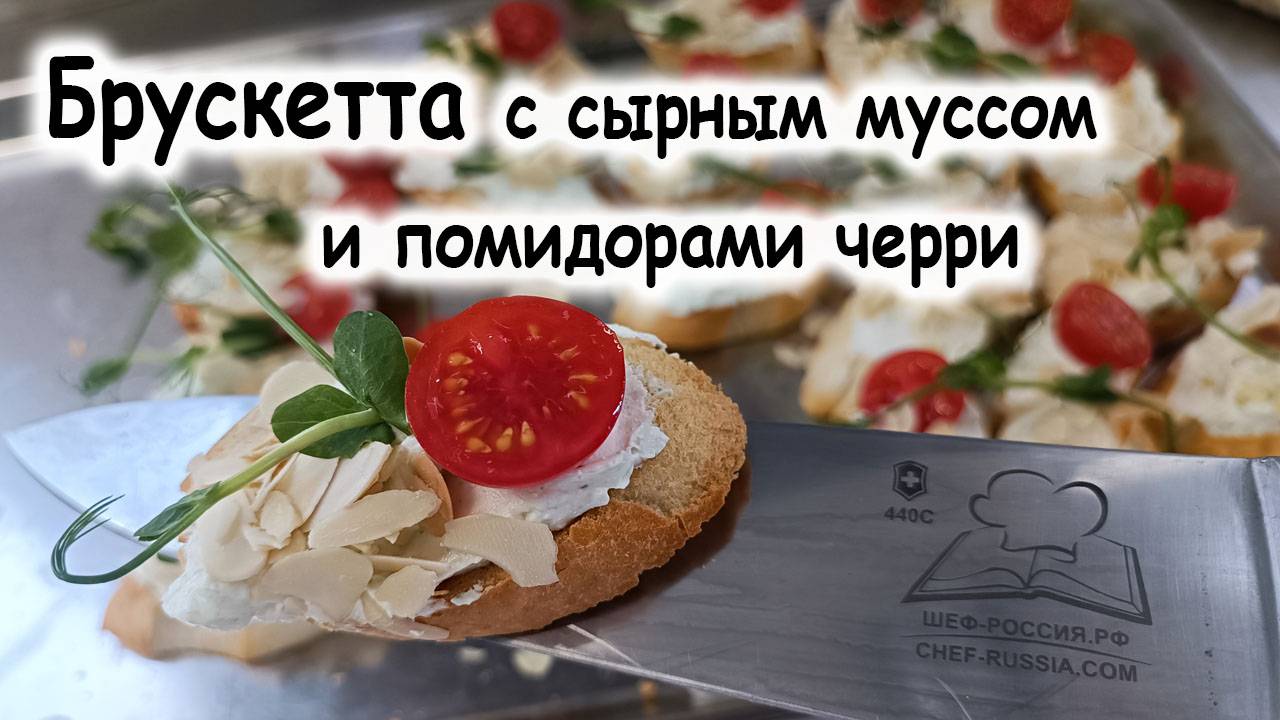 Шеф-Россия.рф скачать: книги, меню, ттк, рецепты, школа, мастер классы. Брускетта с сырным муссом и помидорами черри — итальянская закуска из обжаренного хлеба (багета или чиабатты) с добавлением сыра и помидоров черри. Для мусса можно использовать творожный или козий сыр. Ниже представлены рецепты с разными видами сыра. Рецепт с творожным сыром Ингредиенты: багет или чиабатта — 1 шт.; творожный сыр — 150 г; помидоры черри — 200 г; чеснок — 1 зубчик; листья базилика — горсть; оливковое масло — 1 ст. л.; соль, чёрный перец — по вкусу. Приготовление: Нарезать хлеб ломтиками, слегка подрумянить их в духовке или на сухой сковороде. Каждый кусочек натереть зубчиком чеснока, пока тосты ещё тёплые. Смазать чиабатту творожным сыром. Помидоры нарезать кружочками или половинками, выложить сверху. Приправить солью, перцем, добавить листья базилика и сбрызнуть оливковым маслом. Совет: для дополнительной пикантности можно добавить каплю бальзамического уксуса. Рецепт с козьим сыром Ингредиенты: французский багет, нарезанный по диагонали на десять ломтиков; ½ стакана нарезанных помидоров черри; 1 столовая ложка нарезанного свежего базилика; ½ чайной ложки измельчённого чеснока; ¼ чайной ложки оливкового масла; ⅛ чайной ложки соли; ⅛ чайной ложки чёрного перца; 85 г козьего сыра; 1 чайная ложка бальзамического соуса. Приготовление: Разогреть духовку до 200 градусов. Поместить ломтики багета на противень, застеленный фольгой, и сбрызнуть верх кулинарным спреем. Перевернуть ломтики и также опрыскать другую сторону. Поместить ломтики багета в духовку на 10–12 минут, пока края не станут золотистыми. Смешать в миске помидоры, базилик, чеснок, оливковое масло, соль и перец. Намазать каждый поджаренный ломтик багета козьим сыром, равномерно распределив его по хлебу. Распределить томатную смесь поверх козьего сыра, сбрызнуть соусом. Брускетта — традиционная итальянская закуска, которая имеет историю, связанную с крестьянским перекусом. Брускетты на стол рецепт фото Происхождение Блюдо зародилось в деревне. Крестьяне использовали подсушенный хлеб, который приправляли чесноком и оливковым маслом, как перекус во время полевых работ. Название «брускетта» произошло от глагола bruscare, что дословно означает «запекать на углях». Эволюция рецепта Постепенно брускетта стала популярна не только среди крестьян, но и среди обеспеченных людей. К первоначальному рецепту добавили начинки из овощей, сыров, мяса и даже фруктов. В разных регионах Италии блюдо называется по-разному: например, в Тоскане — феттунта (ломтик), в некоторых местностях — панунто (от итальянского слова «хлеб»). Современное значение Брускетта сейчас — закуска-антипасто, которую подают перед основными блюдами. Её также можно использовать как отдельное блюдо. В современной кухне существует множество вариаций брускетты, но основа из хлеба, чеснока и оливкового масла остаётся неизменной. Каталог с лучшими рецептами. Готовим вкусно, быстро и просто. Пошаговые рецепты с фото – Шеф-Россия.рф Рады сообщить, что у нас появился канал в Telegram, в котором мы будем публиковать новости от Дивизиона Шеф-Россия.рф Подписаться на наш канал очень просто! Просто перейдите по ссылке https://t.me/+zgi1e2Ooh4thMDhi