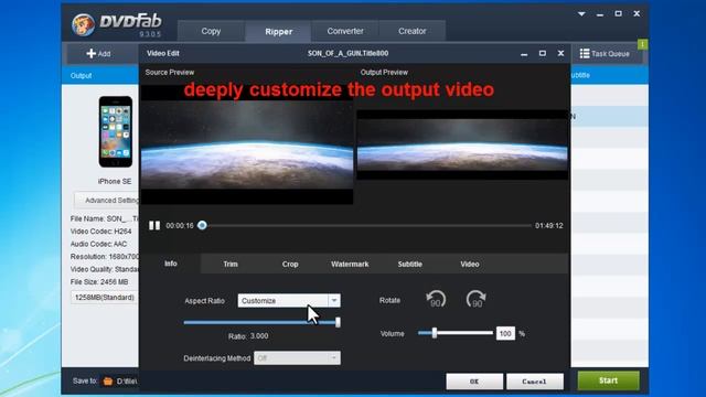 DVDFab Blu-ray Ripper, the top-level Blu-ray ripper software in the multimedia area, is capable of reading all kinds o Blu-ray, and converting them to any mainstream or up-to-date format and device within three steps. Here is a video tutorial describing how to rip and convert Blu-ray to iPhone SE with DVDFab Blu-ray Ripper. For more info, please visit: http://www.dvdfab.cn/blu-ray-ripper/How-to-convert-Blu-rays-for-watching-on-iPhone-SE.htm.