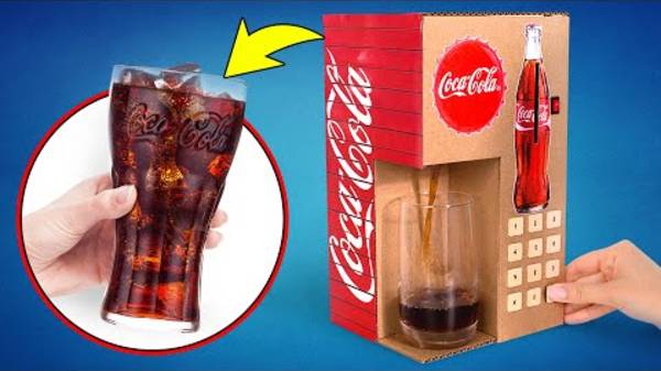 Самодельный картонный торговый аппарат с газировкой