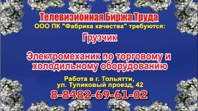Вакансии и телефоны прямых работодателей в специализированной программе по трудоустройству "Телевизионная Биржа Труда" - г.САМАРА, г.ТОЛЬЯТТИ т/к РЕН-ТВ