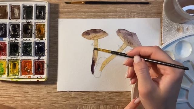 Как нарисовать опята карандашом и акварелью начинающим | Рисунок для детей