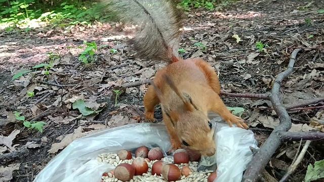 Белка долго принюхивалась к орехам, перед тем как выбрать один