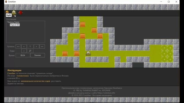https://kursovik.com/programming/102690063.html Игра "Сокобан" Sokoban. Программа написана на Visual C# .NET 2019 WinForms. Двухмерная компьютерная игра-головоломка, в которой игроку необходимо расставить ящики по обозначенным местам лабиринта. Кладовщик одновременно может двигать только один ящик, толкая вперёд. Игра Sokoban была создана в 1981 году Хироюки Имабаяси, и издана в 1982 году японской компанией Thinking Rabbit. Уровни для игры расположены в виде текстовых файлов. Всего представлено 60 уровней из стандартного набора уровней. Управление человечком - клавиши со стрелками на клавиатуре. Тыкнул мышкой в точку - и человечек сам туда прибежал. Реализовано три скина для графического представления игры. Кнопка возврата хода. Счетчик ходов (перемещений игрока). Счетчик времени прохождения уровня. После установки последнего ящика в целевую ячейку игра переходит к следующему уровню. Скачать Demo-файл программы можно по ссылке: https://kursovik.com/programming/102690063/exe Приобрести исходники(все файлы проекта) данной программы Вы можете, заполнив следующую форму: https://kursovik.com/programming/102690063.html?camefrom=rutube#form Задать вопрос автору: https://kursovik.com/programming/102690063.html?camefrom=rutube#vopros Заказать отчёт(описание): https://kursovik.com/programming/102690063.html?camefrom=rutube#pz_need Заказать модификацию программы: https://kursovik.com/uniform.html?modify=102690063&camefrom=rutube Заказать новую программу (с чистого листа): https://kursovik.com/programming_order.html?camefrom=rutube Наш Телеграм-БОТ для поиска готовых работ по программированию https://t.me/kursovikcom_bot , в нашей базе более 5и тысяч готовых работ, для более эффективного поиска используйте наш Телеграм-БОТ. Список наших готовых работ по программированию: https://kursovik.com/progtopic.html Разработка программ на заказ согласно Вашему заданию: https://kursovik.com/programming_order.html Мы пишем программы практически на всех языках программирования, работаем с различными базами данных, выполняем как мелкие задачки, так и крупные проекты. Разрабатываем и запускаем в работу ЧАТ-БОТы. Обращайтесь - всегда будем рады Вам помочь! Если нужно переписать данную программу на другой язык программирования - обращайтесь - сделаем. Адрес нашего сайта: https://kursovik.com Наши контакты: https://kursovik.com/contacts.html Наша группа ВК: https://vk.com/kursovik (всем подписчикам скидка 5%) Наш Телеграм-канал: https://t.me/kursovik (всем подписчикам скидка 5%) Наш Дзен-канал: https://dzen.ru/kursovik (всем подписчикам скидка 5%) Наш RuTube-канал: https://rutube.ru/channel/41864889 (всем подписчикам скидка 5%) Наш YouTube-канал: https://youtube.com/@kursovik_com (всем подписчикам скидка 5%) (скидка предоставляется на работы, выполняемые нашим сайтом на заказ (написание работы с чистого листа), скидки не суммируются :-) #sokoban #игра #сокобан