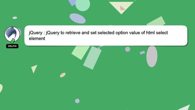 jQuery : jQuery to retrieve and set selected option value of html select element To Access My Live Chat Page, On Google, Search for "hows tech developer connect" As promised, I have a secret feature that I want to reveal to you. This is a YouTube's feature which works on Desktop. First, Make sure the video is currently in playing mode. Then, type the letters 'awesome' on your keyboard as the next step. Your YouTube progress bar will transform into a flashing rainbow. A brief introduction of myself, Hi, my name is Delphi, nice to meet you. I am available to help you find solutions to your inquiries. jQuery : jQuery to retrieve and set selected option value of html select element Please feel free to comment or chat with me for more detailed information. Your input is valuable, so please comment below if you have an answer or any insights to the answer. A 'heart' from me will be given as a sign of appreciation for your answer. select jQuery : jQuery element set value selected retrieve of option html to and