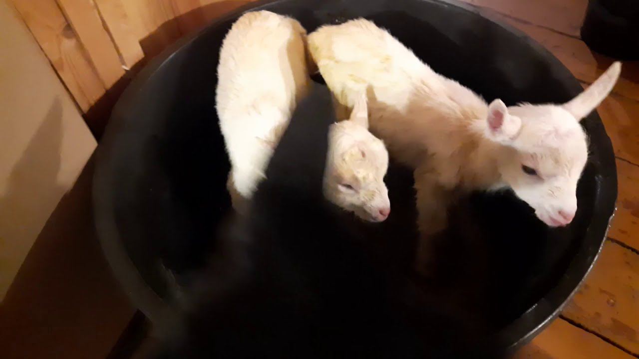 Родились козлята! Собака в няньках у новорожденных ))