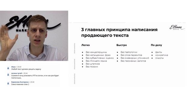 https://vk.cc/cuxzx0 - cмотрeть матepиaл "7 видов копирайтинга" нa интеpнeт-реcyрсe Текст в продажах значит больше, чем вы думаете. Ведь именно слова оказывают влияние на то, какие действия предпримет человек и что подумает о какой-либо продукте, услуге, компании. Текст формирует мнение, поэтому очень важно написать его правильно Копирайтинг не такое уж и простое дело. В тексте вы должны вселить в читателя веру в то, о чем пишите, донести до него суть. А продающий текст должен убедить покупателя совершить действие О чем говорим на эфире: - Что такое копирайтинг и в чем его отличие от простого текста - Цели и задачи продающего текста в маркетинге - Инфостиль, или как очистить ваш текст от мусора и наполнить полезной информацией - 3 простых правила написания эффективного продающего текста - Что такое tone of voice в копирайтинге и зачем он бизнесу - Сколько и за что платят профессиональным копирайтерам - Как обучиться копирайтингу - Какие фишки использовать в текстах В этом видео расскажет и покажет на примерах Валерий Магуйло Ознакомьтесь со всеми обучающими программами E11even Marketing➡ #копирайтинг#продающие_тексты#как_написать_продающие_тексты#копирайтер #продающие_статьи#продающий_текст_примеры#работа_копирайтером #модель_продающего_текста#пиши_сокращай#книга_Ильяхова #продающий_текст#продающие_тексты#написание_статей#как_писать_текст #как_написать_текст#как_написать_продающий_текст #как_писать_продающие_тексты#продающий_копирайтинг#контент_маркетинг #интернет_маркетинг#обучение_копирайтингу#продажи#продающий_пост#текст #копирайтинг_с_чего_начать#копирайтинг Ставьте лайк, если видео было полезным и обязательно подписывайтесь на наш канал. Так проще всего выразить благодарность за наши труды Дмитрия можно найти тут: Блог Insta FB VK #заработок #бизнес #работа #деньги #заработокснуля #заработоквинтернете #заработоконлайн