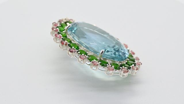 •Габарит украшения указан в обрамлении мм. •Кабошон топаз голубой 23*35мм. •Кабошон демантоид (гранат) 5*5мм. •Кабошон розовый турмалин 3*3мм. •Габарит подвески указан без ушка изделия. •При заказе вы покупаете подвеску, представленную на фотографии.