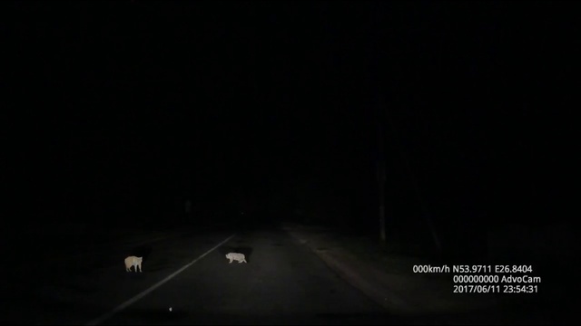 Водитель нарвался на двух ночных котов, которые не хотели уходить с дороги.