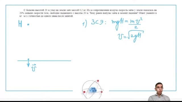 С балкона высотой 20 м упал на землю мяч массой 02 кг Из-за сопротивления воздуха - 30541