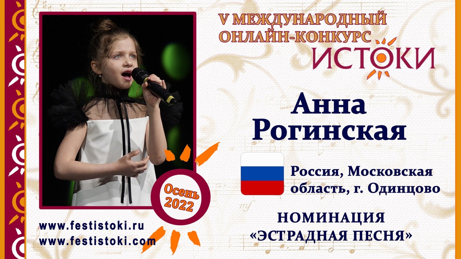 Участник V Международного онлайн-конкурса "Истоки". Номинация "Эстрадная песня". Песня "Папа, нарисуй". Музыка и слова поэта Елены Ваенги. Сайт: www.festistoki.ru / www.festistoki.com E-mail: festistoki@mail.ru