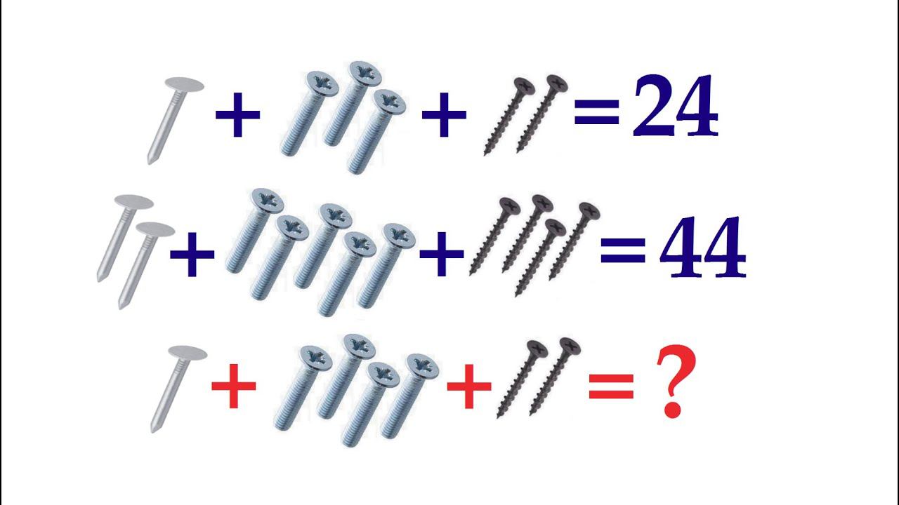 Универсальный способ решения ➜ Сколько весят гвоздь, 4 винта и 2 шурупа?