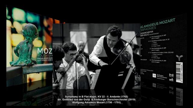 W.А. Моцарт. Все симфонии. Вып. 5-3 Wolfgang Amadeus Mozart (1756 - 1791) – Symphony No.5 in B flat major, K.22 (1765) Вольфганг Амадей Моцарт – Симфония №5 си-бемоль мажор, KV 22 (1765) B-dur ■ en si bemol majeur ■ си-бемоль мажор I. Allegro [2:50] II. Andante [2:33] III. Allegro molto [1:31] Gottfried von der Goltz – Konzertmeister Freiburger Barockorchester / Фрайбургский барочный оркестр Recorded by Little Tribeca in Freiburg (Germany), in February 2019 Симфония № 5 в B♭ (си-бемоль мажор), K.22, была написана Вольфгангом Амадеем Моцартом в Гааге в декабре 1765 года, в возрасте девяти лет, во время своего музыкального турне по Западной Европе. Моцарт серьезно заболел во время своего пребывания в Гааге, и он написал это сочинение, вероятно, во время его выздоровления. Симфония написана для двух гобоев, двух валторн и струнных. По форме это трехчастная итальянская увертюра: 1. Allegro, 4/4 2. Andante, 2/4 3. Allegro molto, 3/8 Все три части особенно ярко окрашены рожками. Симфонию открывает воодушевляющая первая часть в тональности B♭ мажор (си-бемоль мажор), за которой следует более торжественная и грустная часть в тональности соль минор. Короткий, бурный финал завершает произведение. Вступительная тема к финалу написана под сильным влиянием финала к клавирному концерту Иоганна Кристиана Баха, с которым Моцарт познакомился в прошлом году в Лондоне. Та же тема появится и в гораздо более позднем и более зрелом произведении Моцарта: в финале второго акта его оперы-буфф 1786 года «Свадьба Фигаро», К.492. Готфрид Граф фон дер Гольц (Gottfried Graf von der Goltz) (родился 1 июня 1964 года в Вюрцбурге, Германия) — немецкий скрипач и дирижер, специализирующийся на барочном репертуаре. Родившийся в старинной бранденбургской семье Гольц, Готфрид был правнуком бывшего командира дивизии Балтийского моря и Балтийского ландесвера во время Первой мировой войны и Гражданской войны в России генерала Рюдигера фон дер Гольца. Его первыми учителями были его родители, Георг Конрад фон дер Гольц и Кирсти Хьорт. После получения образования в Ганновере, Нью-Йорке и Фрайбурге он присоединился к радио-оркестру гамбургского Norddeutscher Rundfunk в возрасте 21 года. Два года спустя он ушел, чтобы сосредоточиться на своей карьере солиста, камерного музыканта и дирижера. Сейчас он музыкальный руководитель Freiburger Barockorchester. С 1997 по 2004 год он занимал должность профессора Высшей школы музыки Вюрцбурга. В октябре 2004 года он был назначен на должность профессора скрипки и скрипки в стиле барокко в Высшую школу музыки Фрайбурга. С января 2007 года фон дер Гольц также является художественным руководителем расположенного в Осло Норвежского барочного оркестра. Обширная дискография и выпуск DVD Готфрида фон дер Гольца содержат записи его в качестве солиста, камерного музыканта и дирижера, а также более крупные сценические произведения, такие как «Дарданус» Рамо. Фрайбургский барочный оркестр (нем. Freiburger Barockorchester) — немецкий камерный оркестр, специализирующийся на исполнении музыки эпохи барокко и венской классики в аутентичной манере. Основан в 1985 году (первое публичное выступление в 1987). Штаб-квартира коллектива находится в г. Фрайбурге. Оркестр основан студентами и выпускниками Фрайбургской высшей школы музыки (консерватории) во Фрайбурге в 1985 году. Первый концерт нового коллектива состоялся в ноябре 1987 года. До 1997 года оркестр возглавлял Томас Хенгельброк. С 1997 постоянного руководителя нет — оркестром попеременно дирижируют скрипачи Петра Мюллеянс (Müllejans) и Г