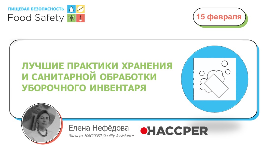 Елена Нефёдова, эксперт HACCPER Quality Assistance, в своем выступлении остановилась на ошибках при хранении инвентаря и поделилась лучшими практиками организации процесса хранения, системы хранения. Кроме того, она презентовала методы санитарной обработки инвентаря и варианты оснащения мест для обработки.
