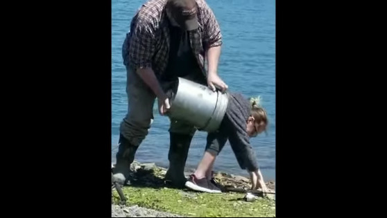 Девочка застряла в ведре, на помощь пришёл папа. #прикол #ведро #дети #фейл #папа