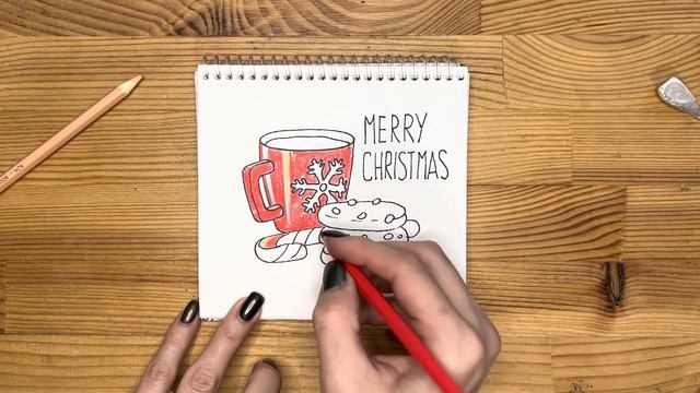 Новогодний рисунок для начинающих поэтапно и легко | Как рисовать цветными карандашами