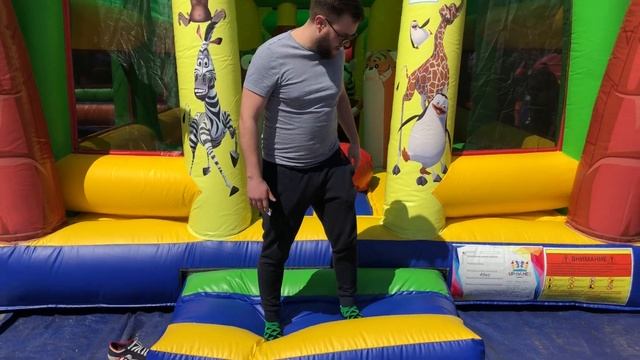 Обзор детского надувного батута с крышей "ДЖУНГЛИ" 5 на 4 . Коммерческий батут. Уличный батут.
