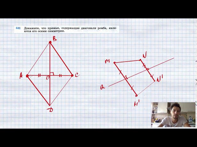 №441. Докажите, что прямые, содержащие диагонали ромба, являются его осями симметрии. TikTok - https://vm.tiktok.com/WJJwK9 Like - https://likee.com/user/@ge0metriya Мой второй канал для подготовки к ЕГЭ и ОГЭ - https://www.youtube.com/ЕвгенийСумин Инстаграм - https://www.instagram.com/EGE_OGE.math Личный инстаграм - https://www.instagram.com/ee_sumin VK - https://vk.com/evgeniysumin FB - https://www.facebook.com/EvgeniySumin